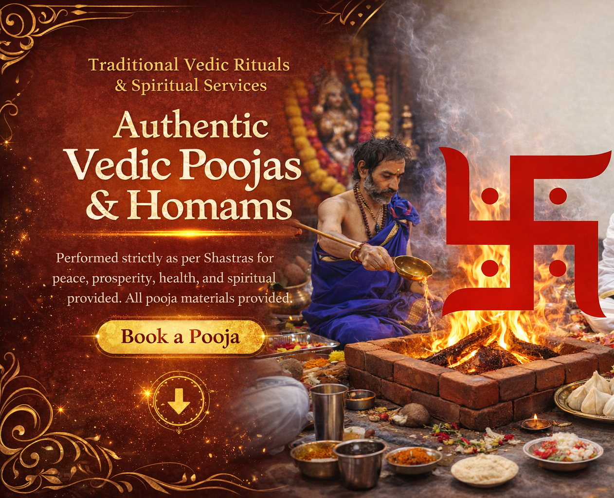 Performed strictly as per Shastras for peace, prosperity, health, and spiritual well-being. All pooja materials provided.